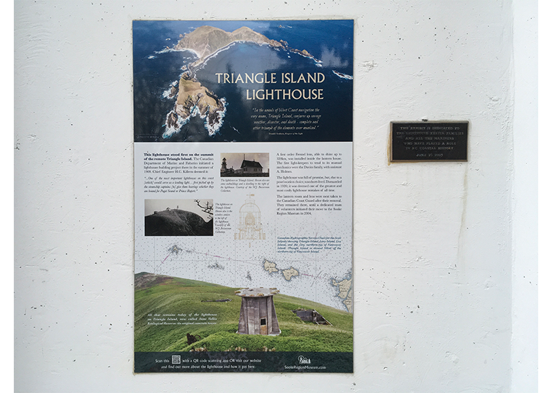 This is an interpretive panel for the Triangle Island Lighthouse located at the Sooke Region Museum.